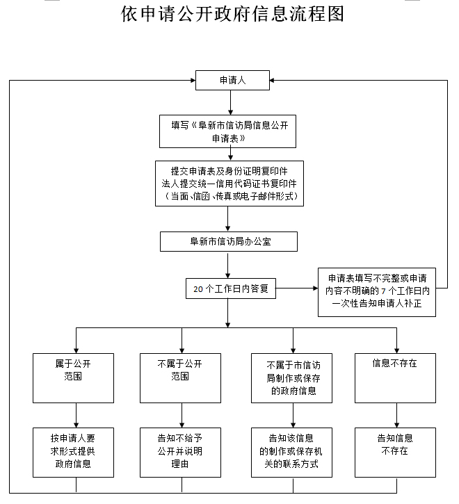 公民、法人或者其他组织(以下简称申请人)可申请公开阜新市信访局主动公开以外的政府信息。阜新市信访局在公开政府信息前,依照《中华人民共和国保守国家秘密法》以及其他法律、法规和国家有关规定对拟公开的政府信息进行审查。
